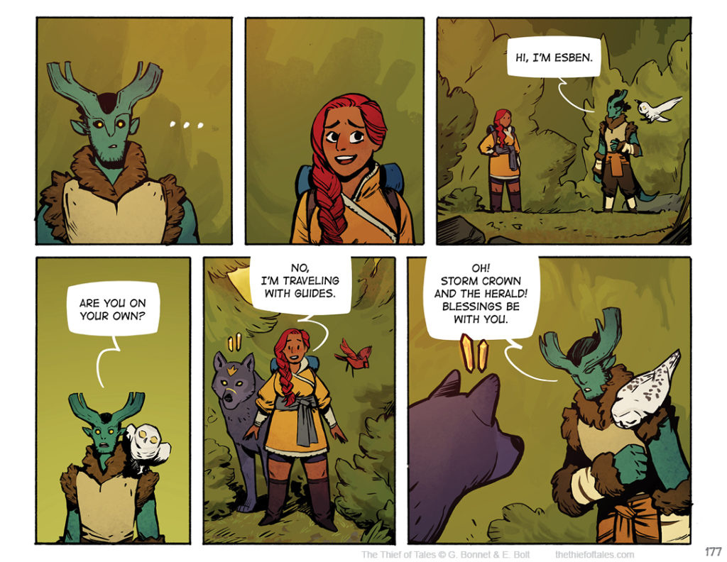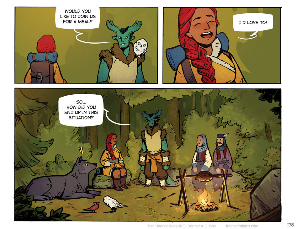 Page 176 by Nevhna on 2020-05-11 at 10:00 am Chapter: Chapter 6 Which of these two things sound the most appealing to Nev right now, companionship or… cooked food? XD Comment