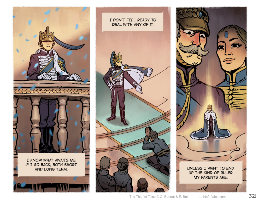 Something tells me that his parents may not approve of this decision, alluding to his comment about “being the kind of ruler his parents are” in that final panel.
